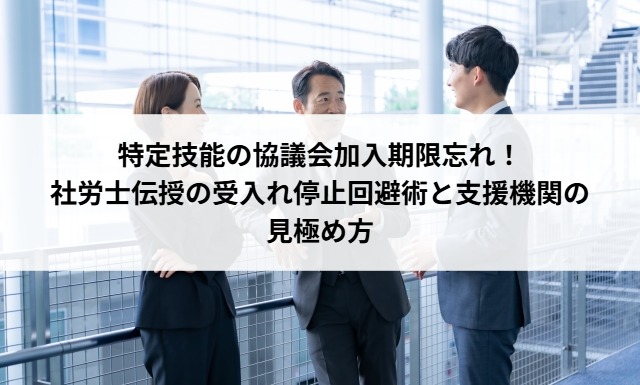 特定技能の協議会加入期限忘れ!社労士伝授の受入れ停止回避術と支援機関の見極め方