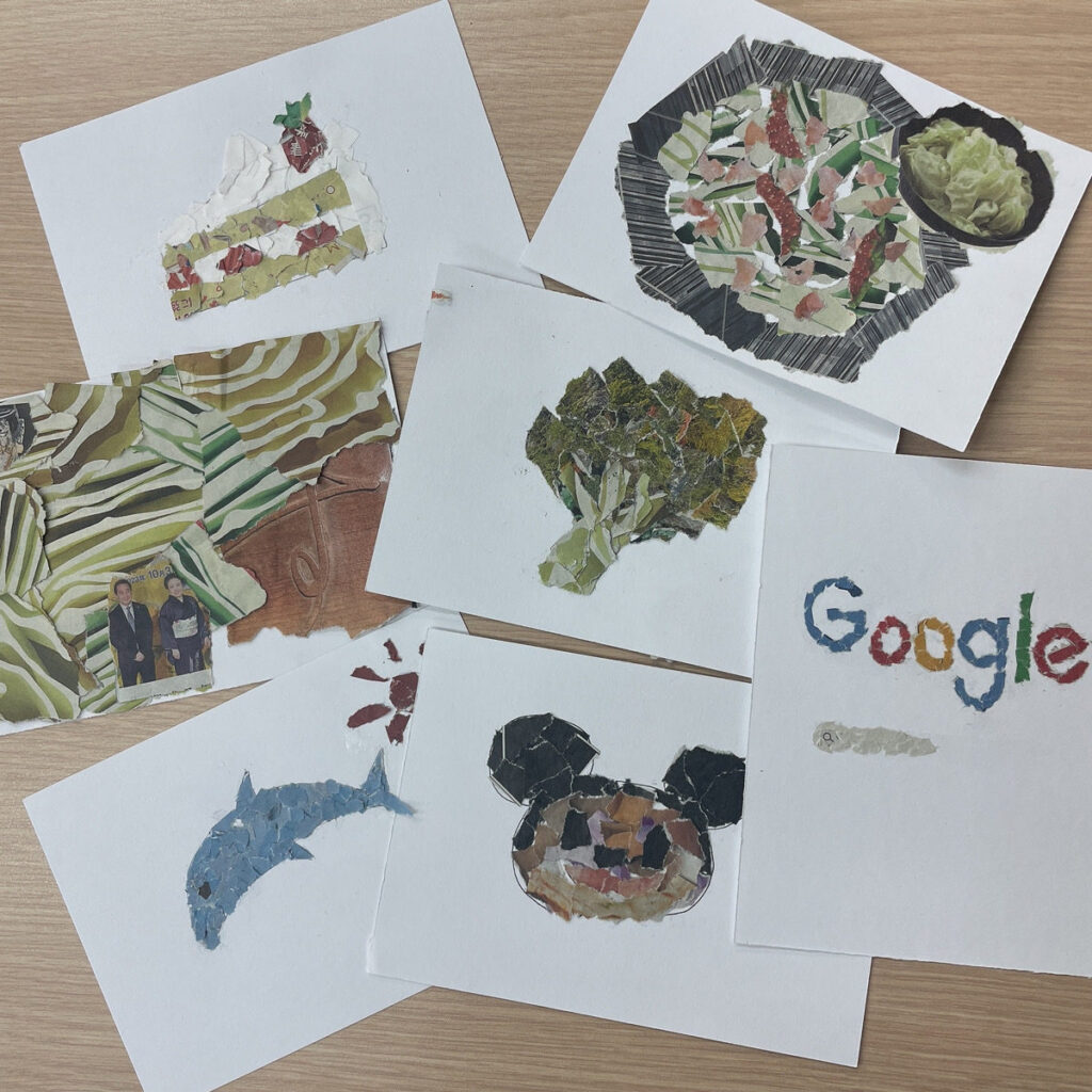 新聞を使ったちぎり絵では、新聞の紙面から色付きの写真を集め、それを素材に絵を作っていきます。 新聞ならではの色味や元々の写真の素材を活かし、様々な表現をすることができます!