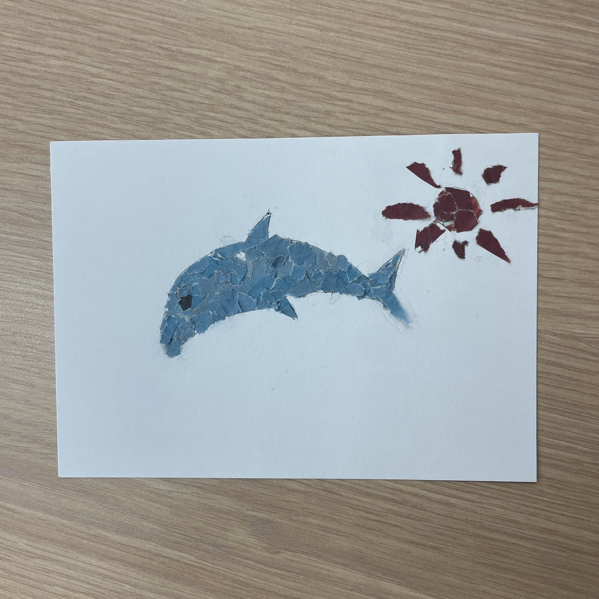 好きな色が水色というところからアイデアを閃いたそうです。 イルカを作り終わった後余った時間で太陽も作り、時間を上手く活用されていました。 地道な細かい作業も最後までやり通せたところが良かったですね!