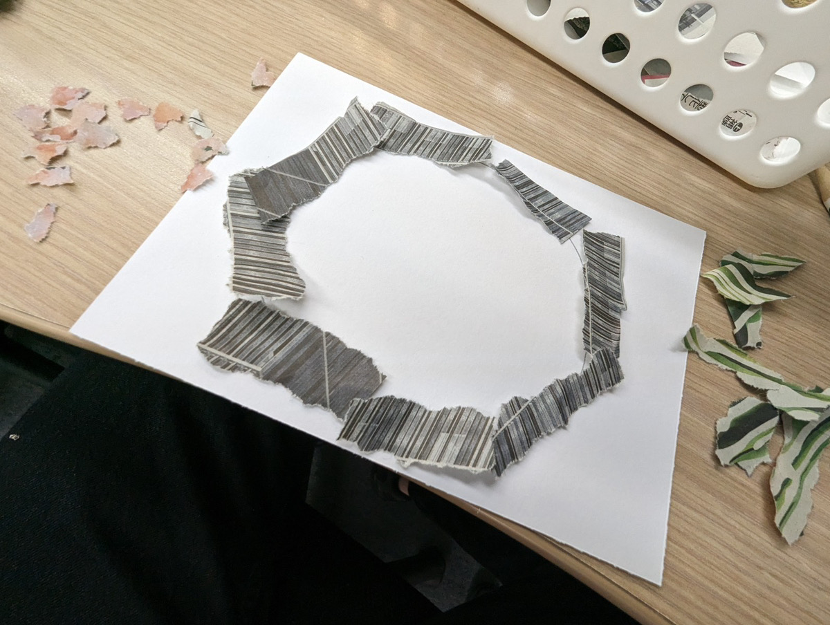 こんにちは。今日は、先日のグループ軽作業の様子をお届けします。 先日のグループ軽作業では「新聞ちぎり絵」をしました。