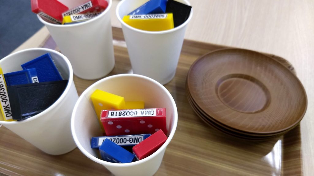はじめは、紙コップを使ってお茶をお客様にお出しする練習です。
