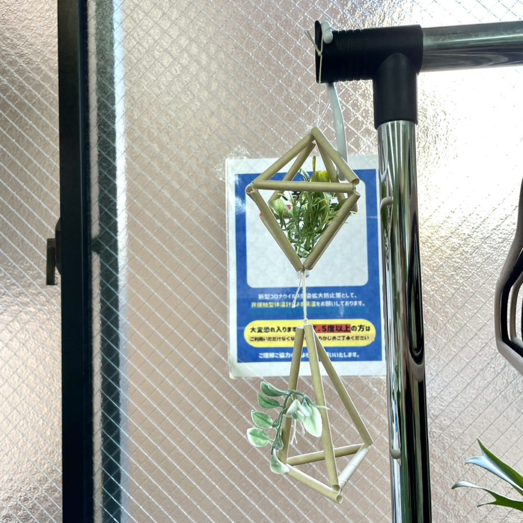 また、入口にあるハンガーラックには、フィンランドの伝統工芸のヒンメリを吊り下げています。太陽光に当たるときれいな影ができるため、窓際に置くのがぴったりなアイテムです。