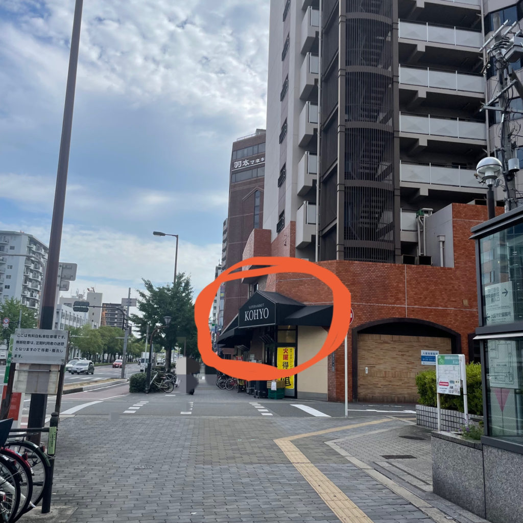 7A号出口を出ると、右側にスーパーマーケットのKOHYOが見ます。そちらに向かって歩いていきましょう♪
