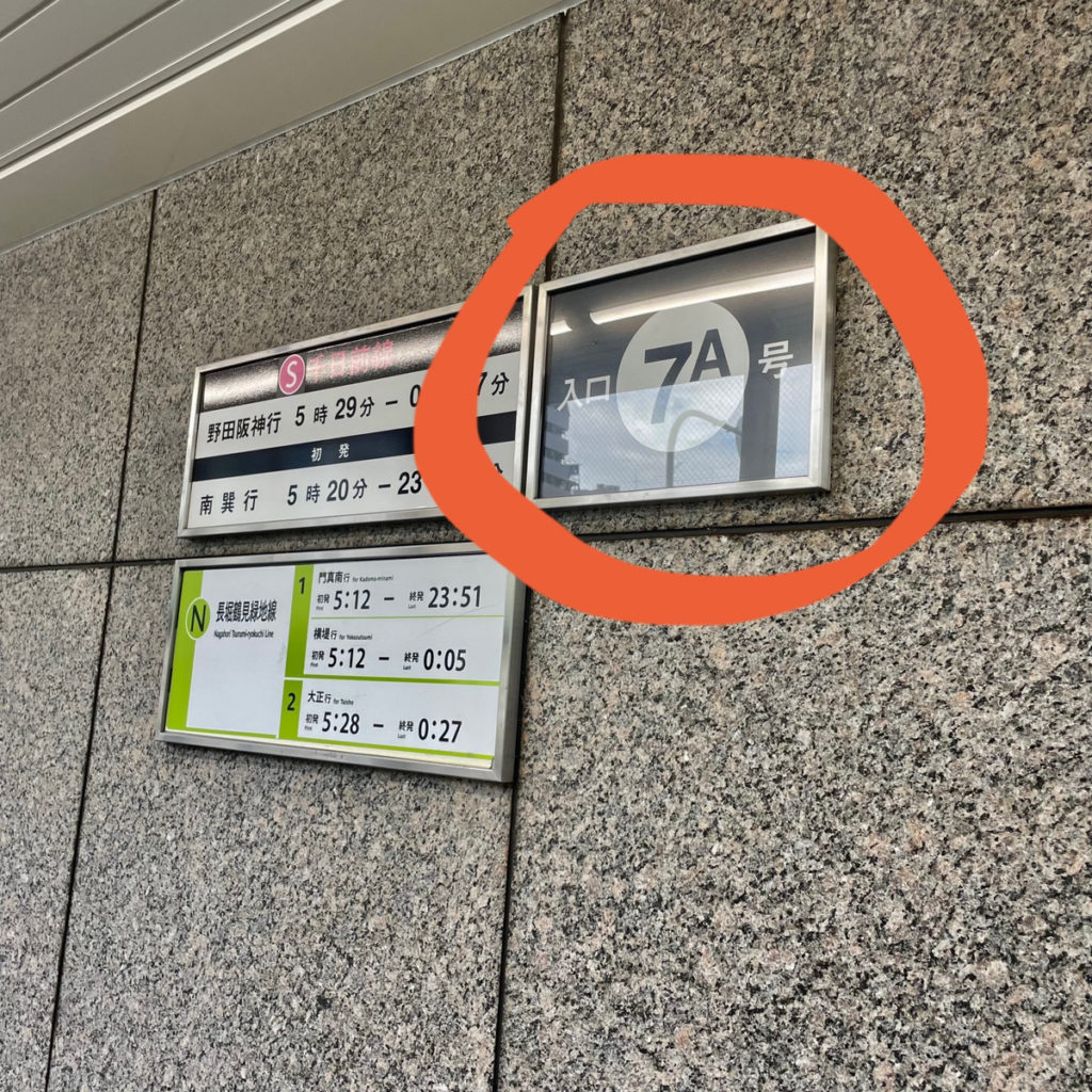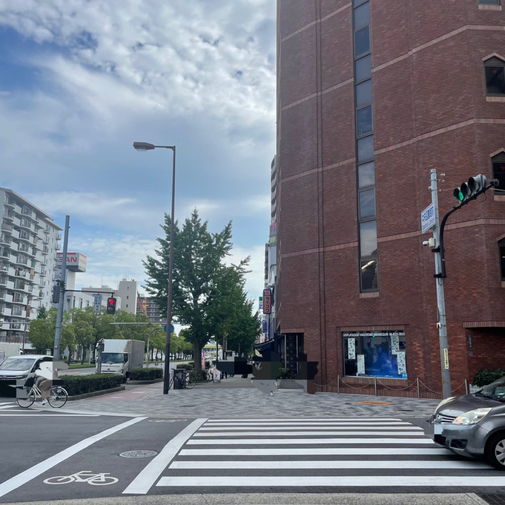 まずは、西長堀駅の7A号出口から出ます。7A号出口からにこにこワークスへは、徒歩でおよそ3分です