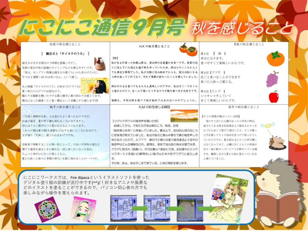 大阪市西区の就労移行支援事業所にこにこワークスで行っている精神疾患や発達障害の方へのサポート~にこにこ通信9月号~