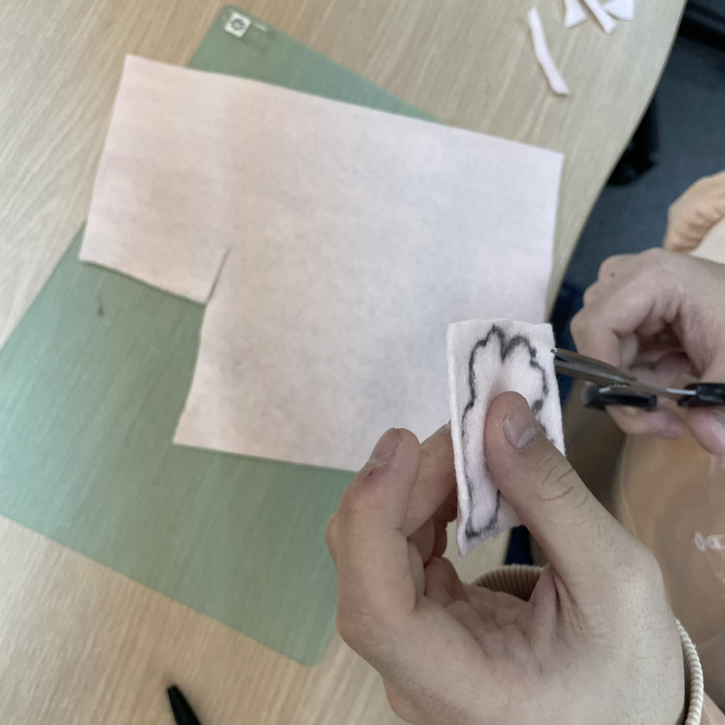 それから黄色いフェルトで中心の部分を作るのですが、皆さんは好きなモチーフや漢字など、次々にアイデアが浮かんでこられたようで……