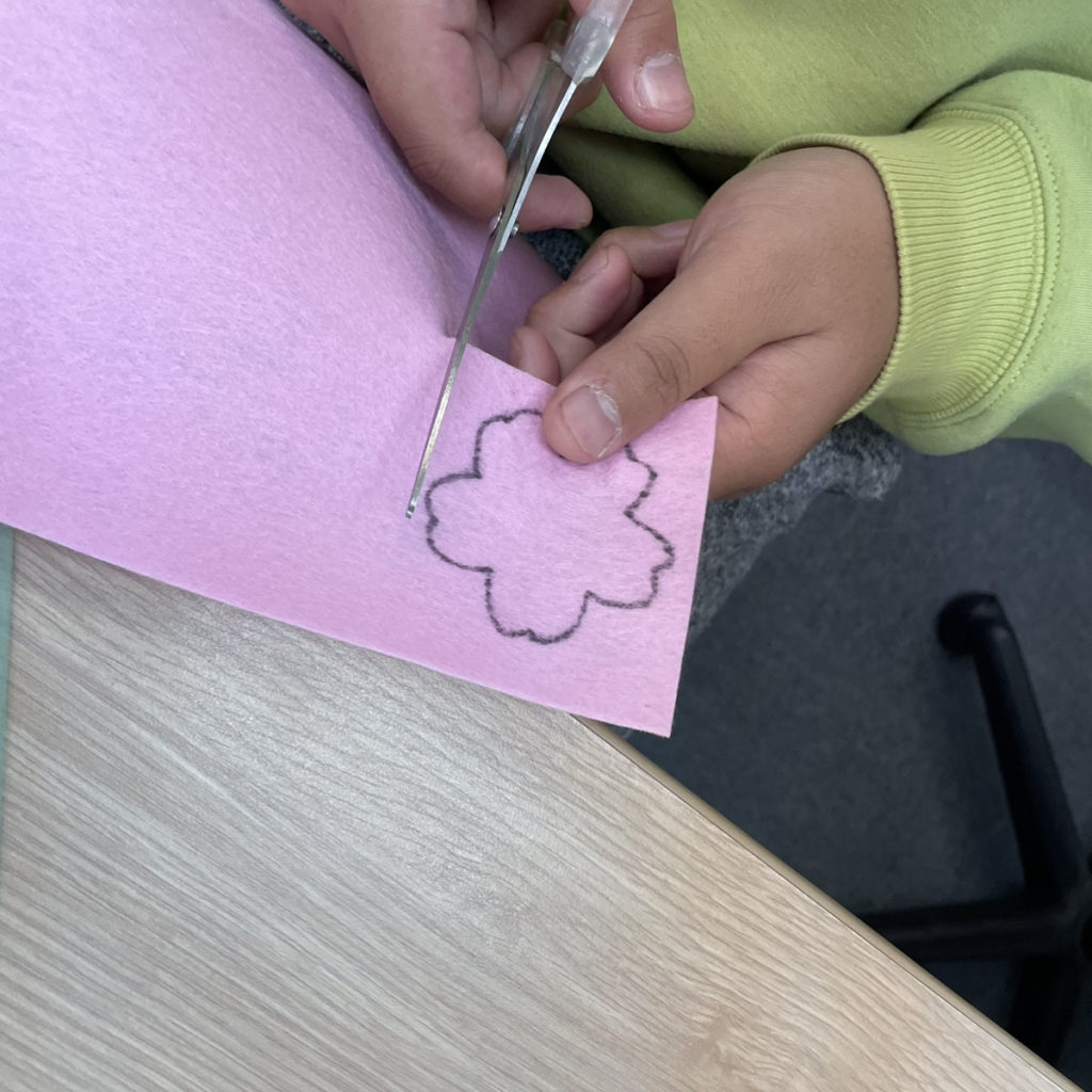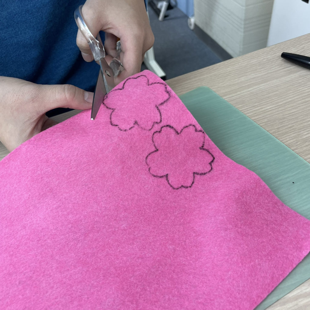 こんにちは。本日はグループ軽作業の講座で桜のガーランドを作りました。 まだまだ寒く、大阪市西区では今日も雪が少し降っていましたが、春先取り企画です☺