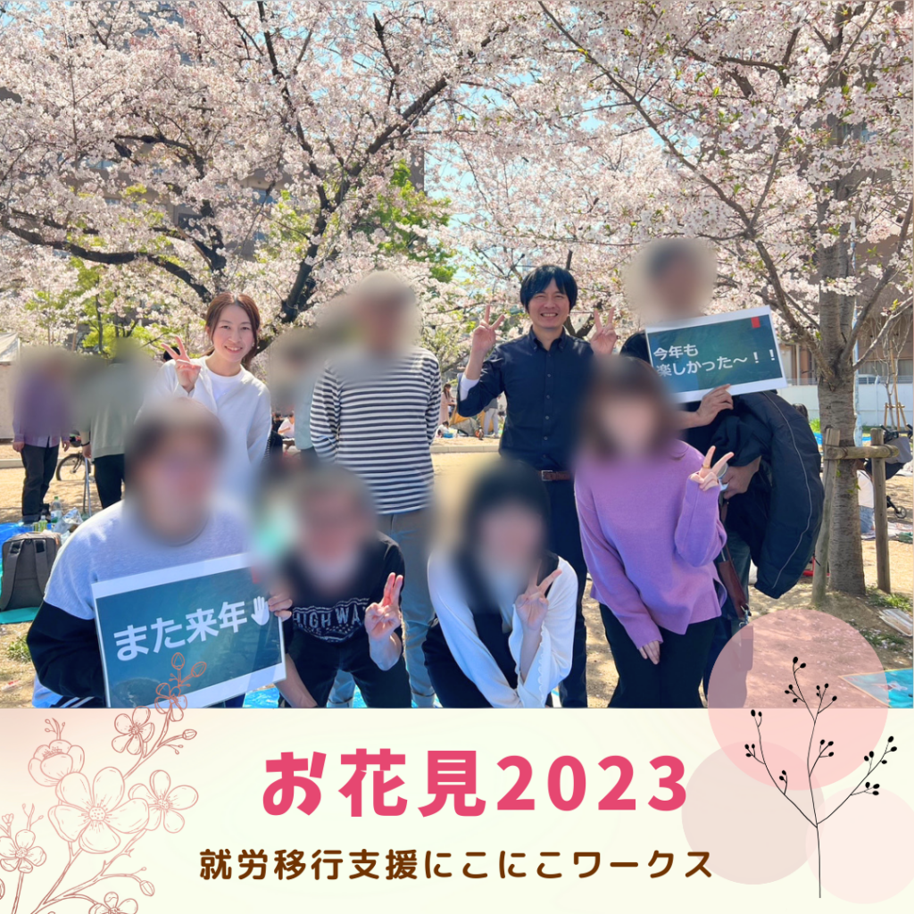 大阪市西区の就労移行支援事業所にこにこワークスで行っている精神疾患や発達障害の方へのサポート ~お花見2023~