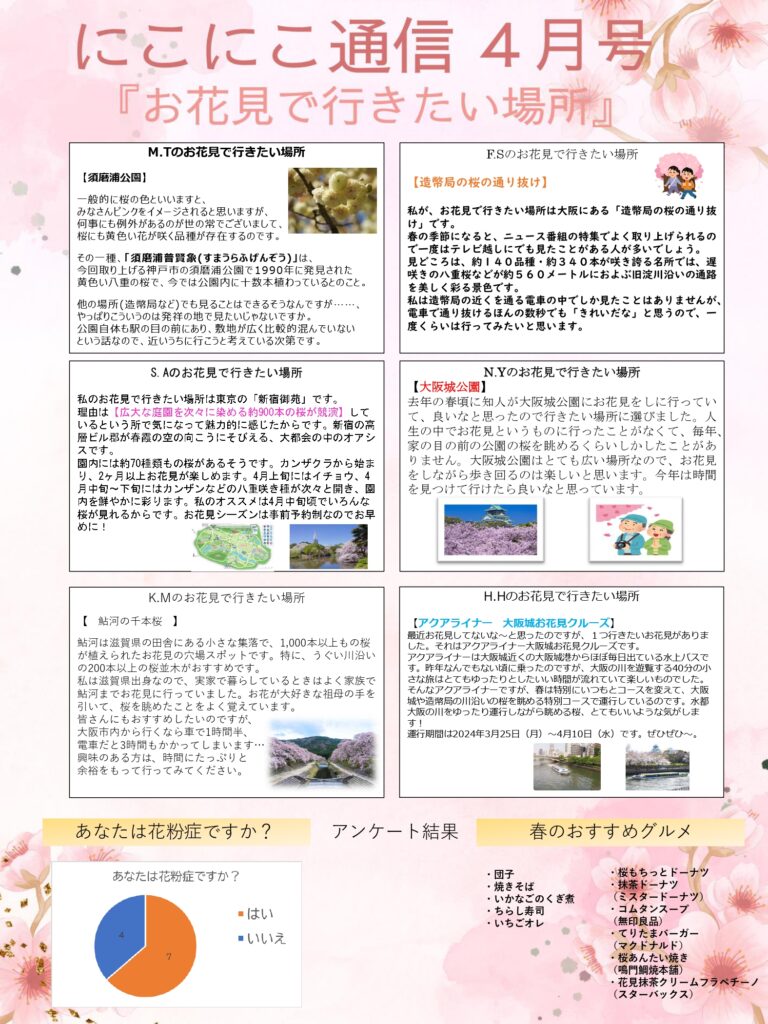 毎月恒例の『にこにこ通信』の4月号が完成しました!
