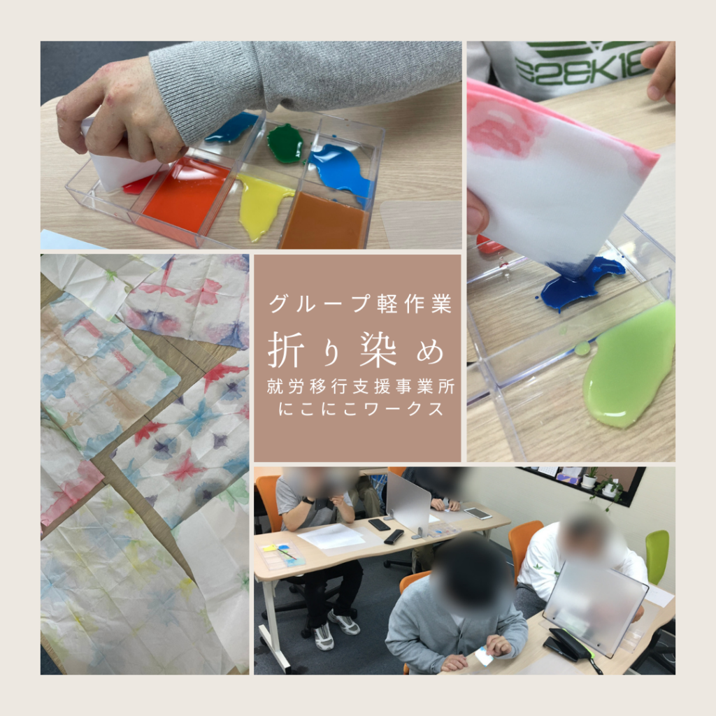 大阪市西区の就労移行支援事業所にこにこワークスで行っている精神疾患や発達障害の方へのサポート ~グループ軽作業『折り染め』~