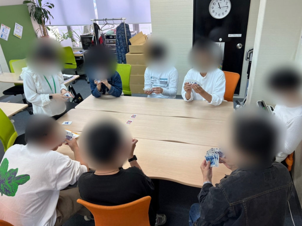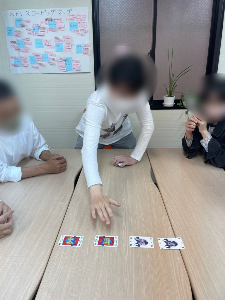 こんにちは。 本日のコミュニケーション講座では、にこにこワークスではすっかりおなじみのニムトをしました。 朝からあらかじめカードを出して準備していたので、「今日はこれなんだな」と気づいていた方もいたようです(笑)
