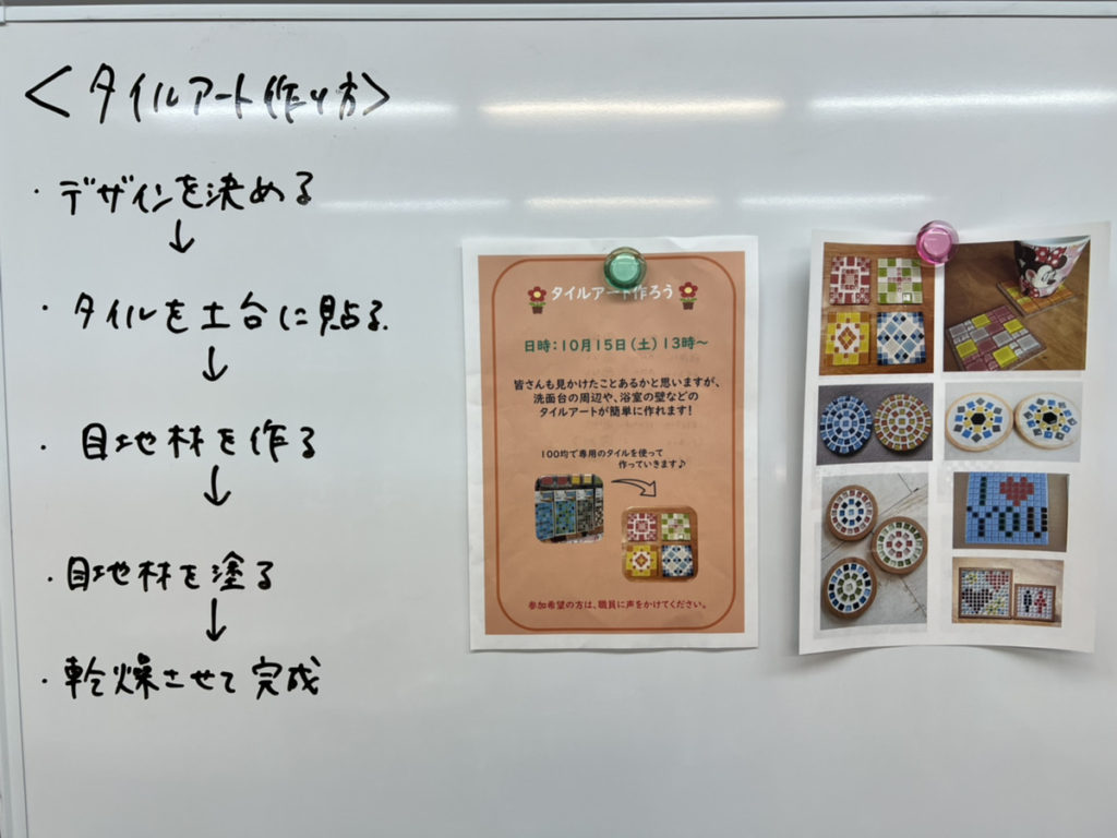 大阪市西区の就労移行支援事業所にこにこワークスで行っている精神疾患や発達障害の方へのサポート ~レクリエーション「タイルアートを作ろう」~
