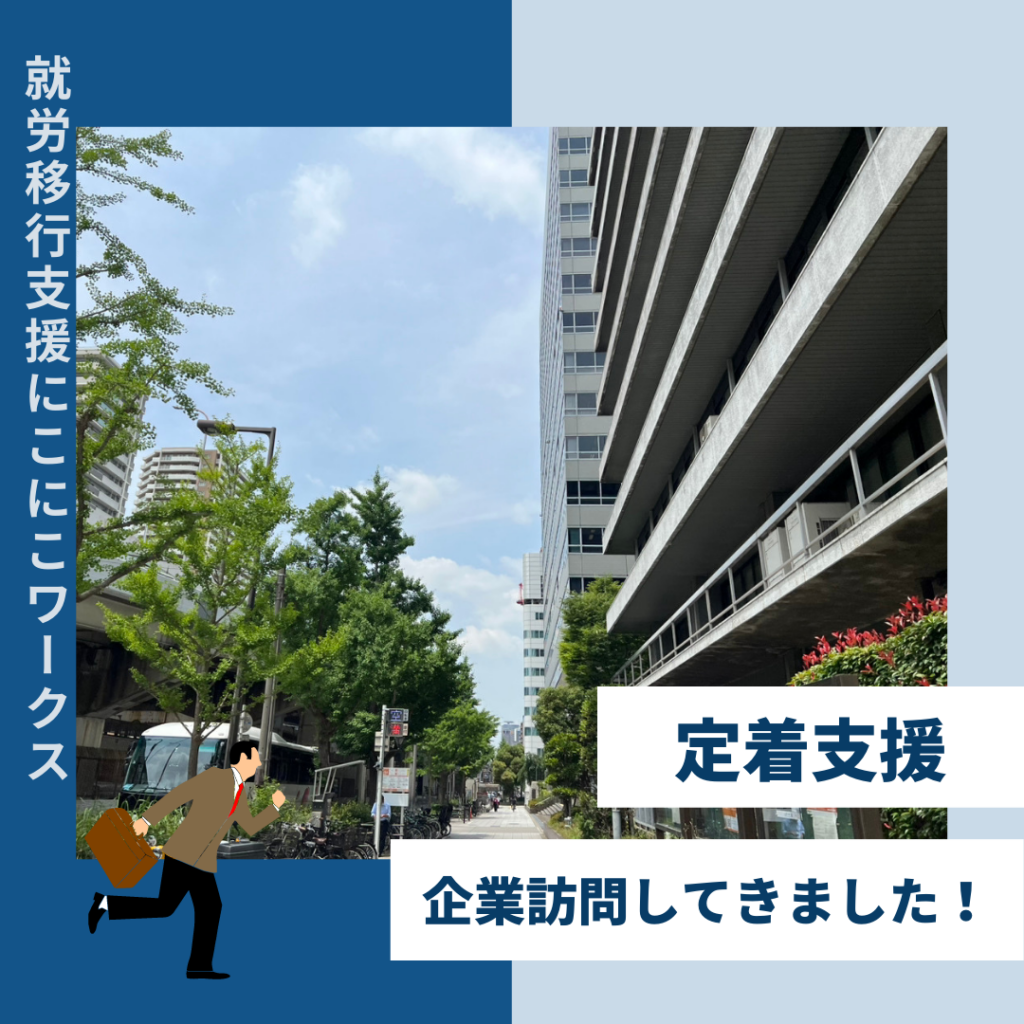 就職後は、このように定期的に企業訪問したり担当の方と情報共有や相談をしながら、安定してお仕事ができるように、定着支援のサポートを6ヶ月間させていただきます。