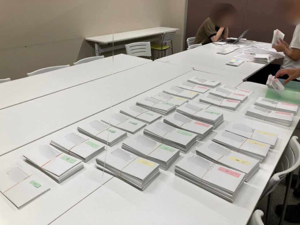 今回の主な作業は封入です。実際にお送りする書類ということで緊張もあったとは思いますが、みなさんで協力しながら、丁寧、正確な作業を心がけました。