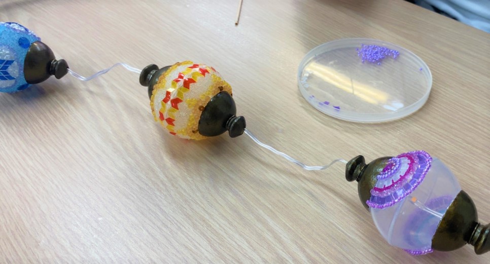 工作がとてもお得意なこの利用者さんは、軽作業の訓練として、ミニサイズのトルコランプづくりに挑戦されています。