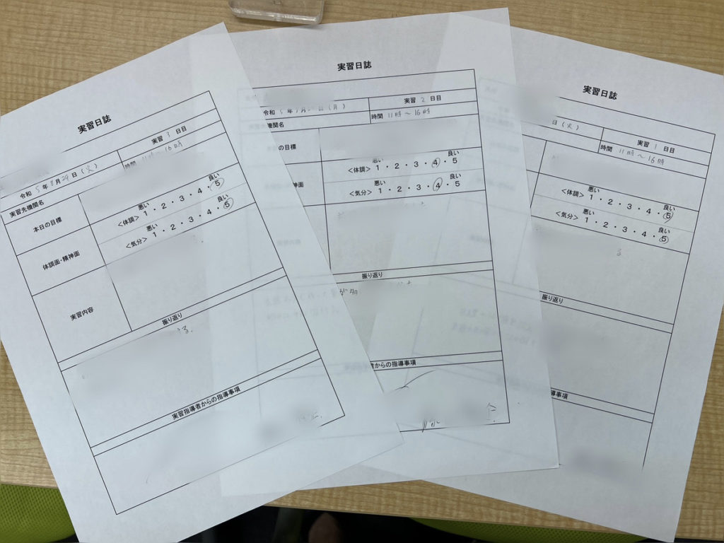 実習中は実習日誌を毎日書いていただいていましたが、目標を立てて毎回取り組めていたようです。