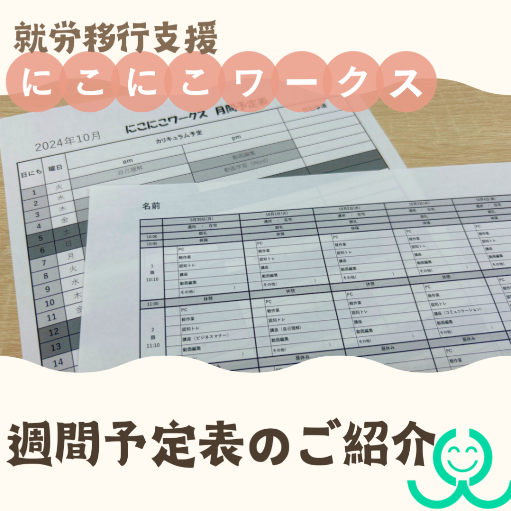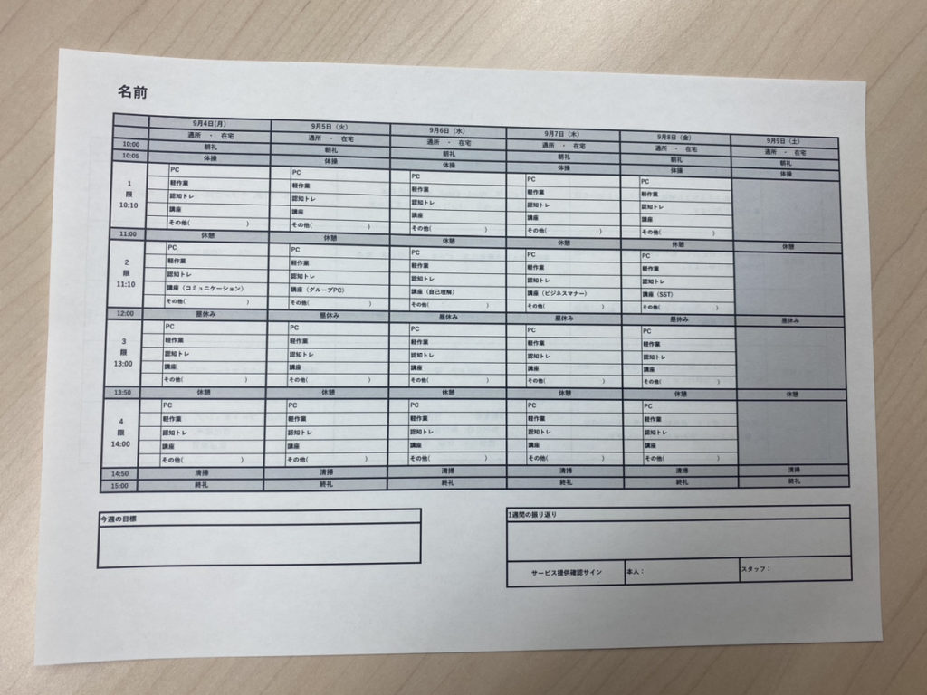 大阪市西区の就労移行支援事業所にこにこワークスで行っている精神疾患や発達障害の方へのサポート ~週間予定表~