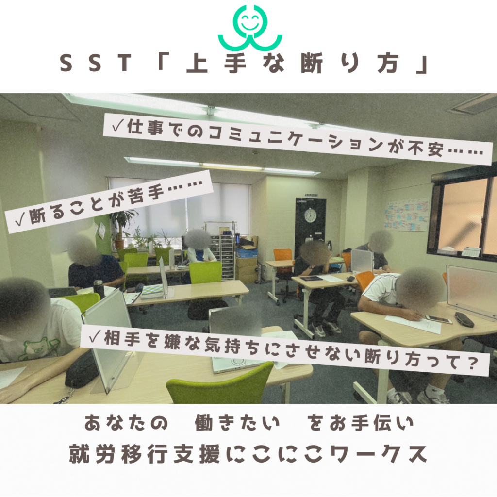 大阪市西区の就労移行支援事業所にこにこワークスで行っている精神疾患や発達障害の方へのサポート ~SST『上手な断り方』~