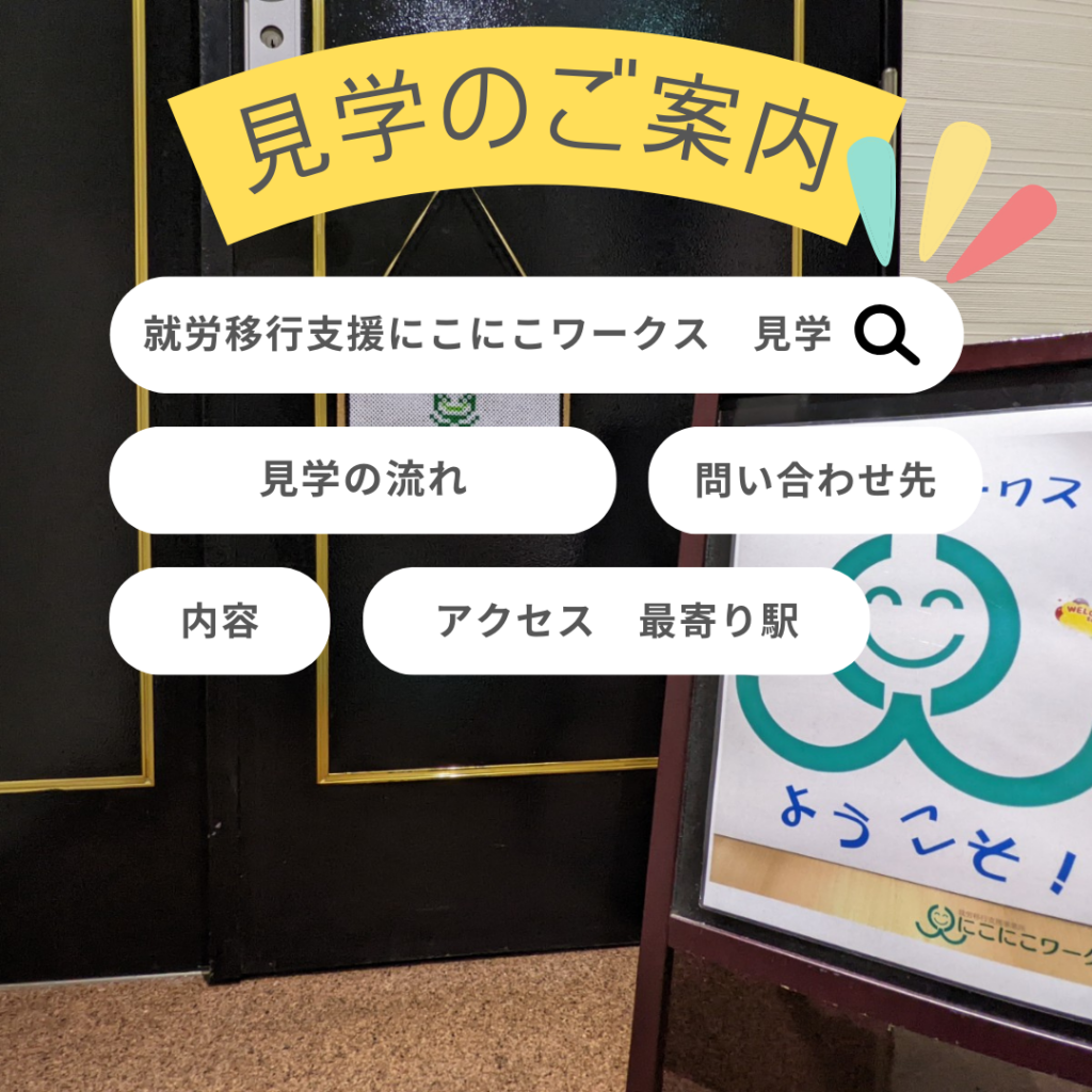 しかし、初めての場所に行くことに対する不安や、見学の流れなどみなさまそれぞれ気になることもお持ちかとは思います。 そこで、今回はにこにこワークスを見学していただくときの方法と、流れをご紹介します。