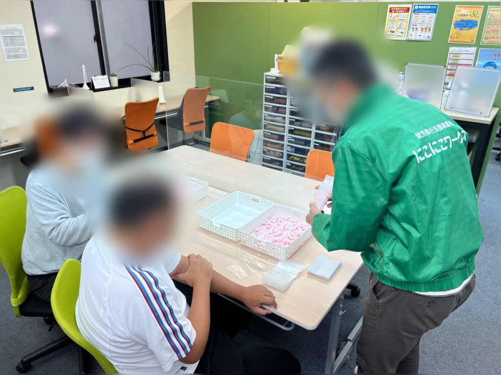 ■にこにこワークスとは? 病気などの事情により企業で働くことに不安がある方、就職しても長く続けることが難しく何度も転職してしまった方、人と上手に付き合うことが難しい方が、長く安心して働くことができるようにお手伝いをさせていただく事業所です。 ■圧倒的に多い退職理由は、人間関係です。 上手な人間関係を築くことができるようになる練習をはじめお一人お一人が「自分らしく働くことが出来るように」お仕事に必要な力を身に付けることができます。 また就職後も安心して働くことができるように、お手伝いしています。 お気軽にお電話ください。