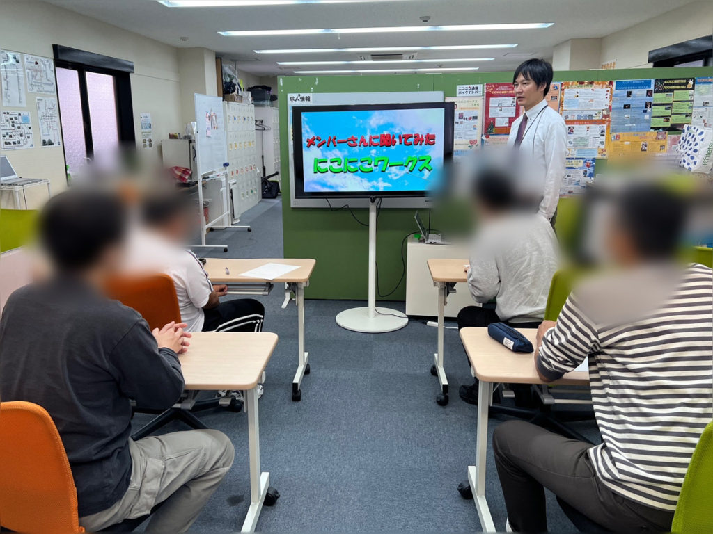 まずは、就労移行支援についてやにこにこワークスの特徴を説明させていただきました。