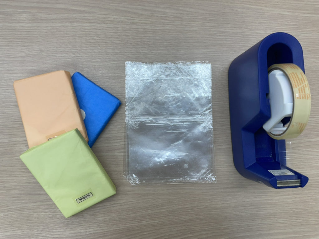 ①材料 必要な材料は、ティッシュ、袋、セロハンテープです。