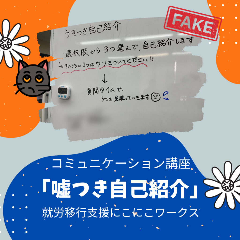 大阪市西区の就労移行支援事業所にこにこワークスで行っている精神疾患や発達障害の方へのサポート ~コミュニケーション講座「噓つき自己紹介」~