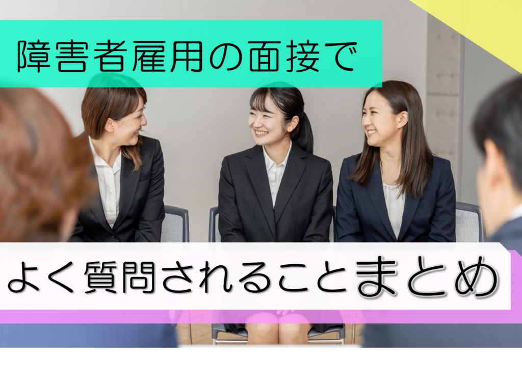 今日の記事では、「障害者雇用の面接でよく質問されること」をまとめさせていただきました。 長文ではございますが、障害者雇用での就職活動をされる方のお手伝いに繋がりましたら幸いです。