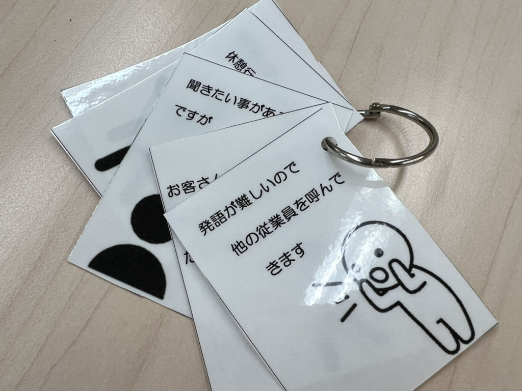 業務で円滑なコミュニケーションを図るため、言葉ではなく相手に伝えるための『絵カード』を作成して実習に臨みました。