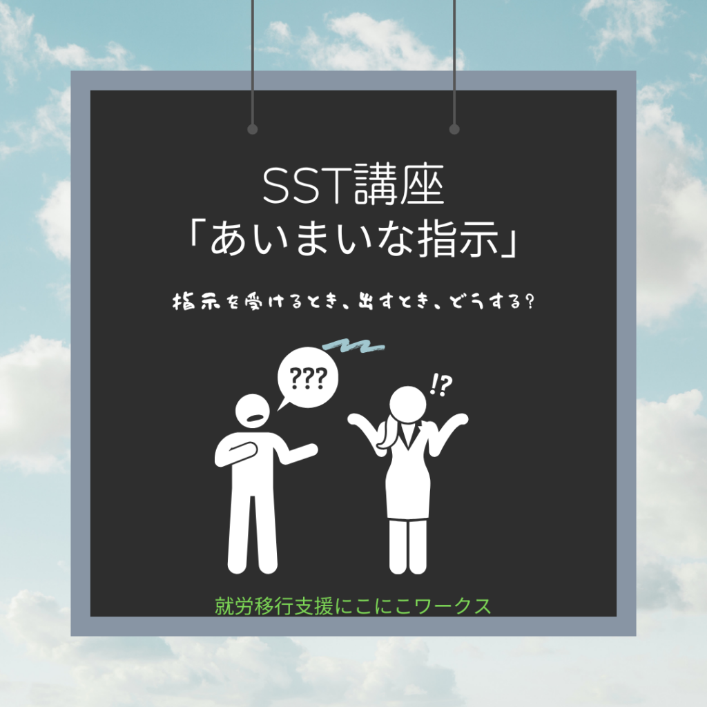 こんにちは。先日のSST講座のテーマは「あいまいな指示でした」 「あっちに置いといて」「早めにお願いします」などあいまいな表現での指示は、 受けることも、急いでいる時についつい自分が出してしまうこともあるかと思います。