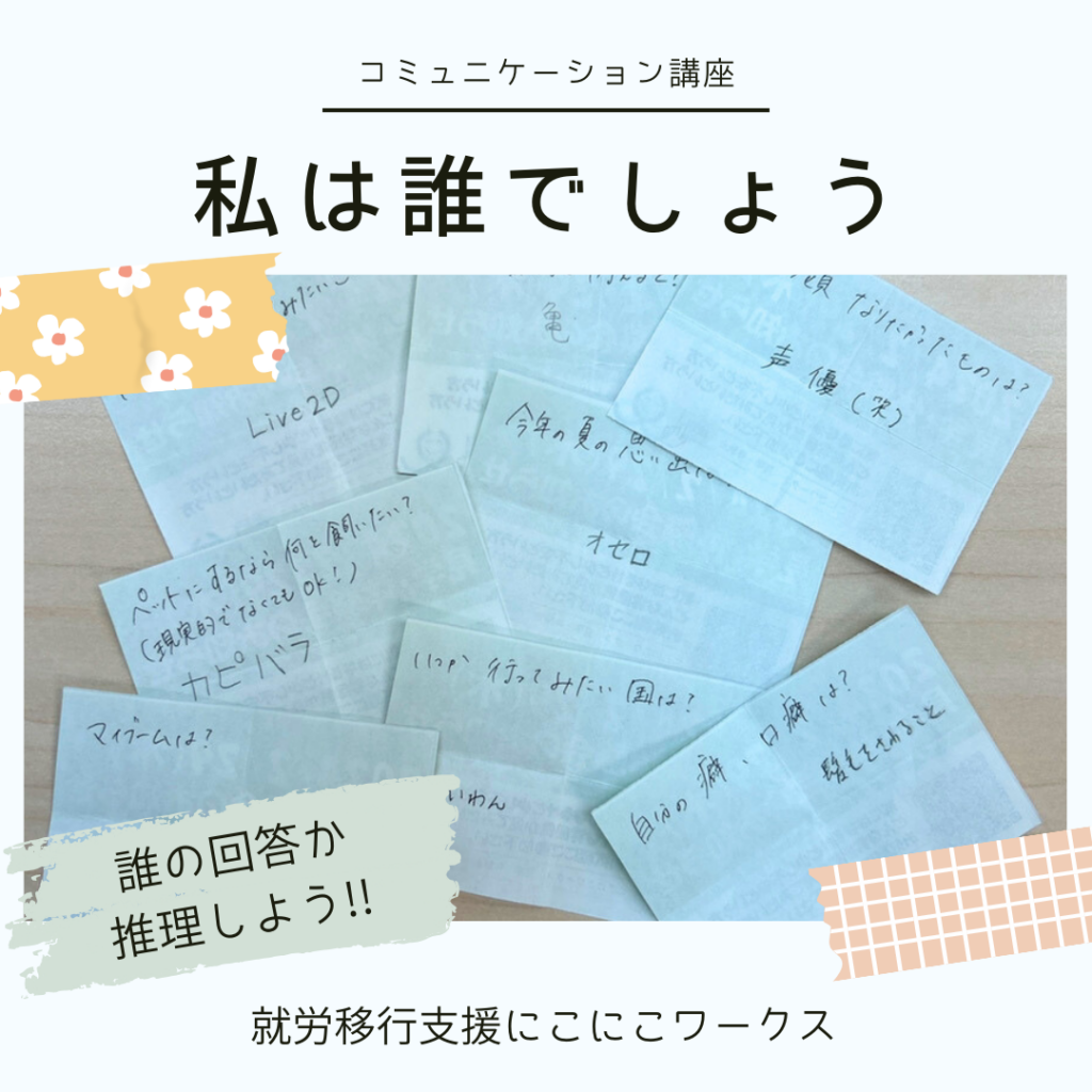 大阪市西区の就労移行支援事業所にこにこワークスで行っている精神疾患や発達障害の方へのサポート ~コミュニケーション講座『私は誰でしょう』~