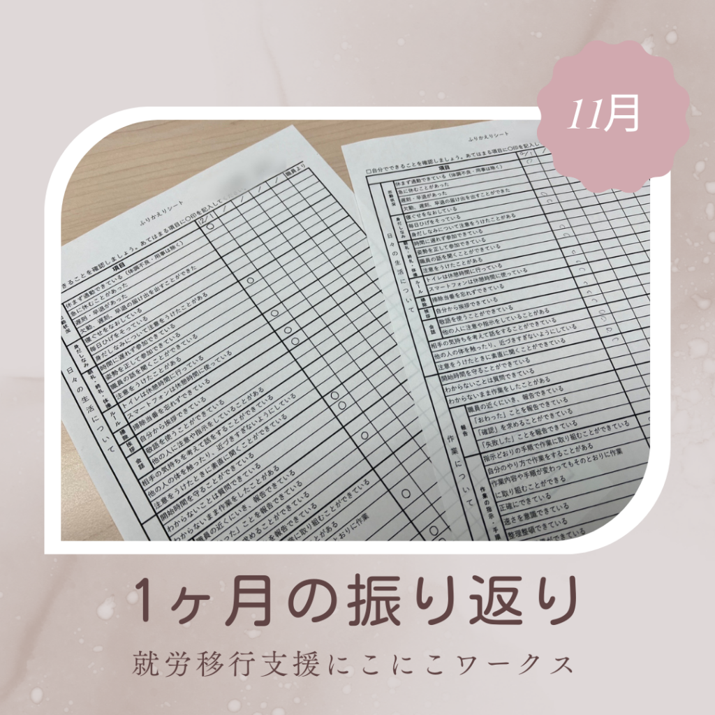 にこにこワークスでは、1ヶ月の振り返りとして『振り返りシート』を新たに取り入れていくことになりました。