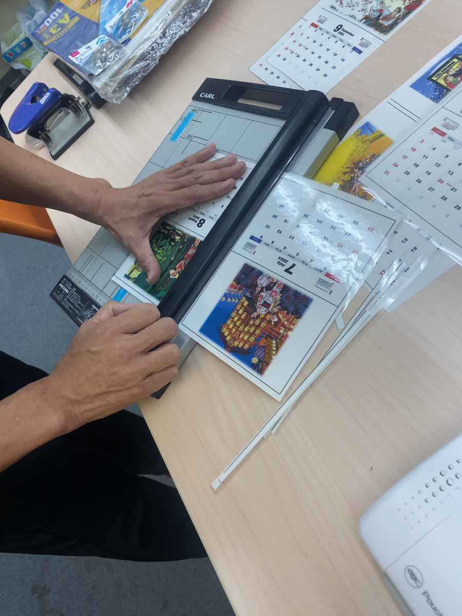 PC操作以外にも、ラミネートやパンチでの穴あけ、カッティングボードでの裁断など 事務作業に近い工程もしていただきました。