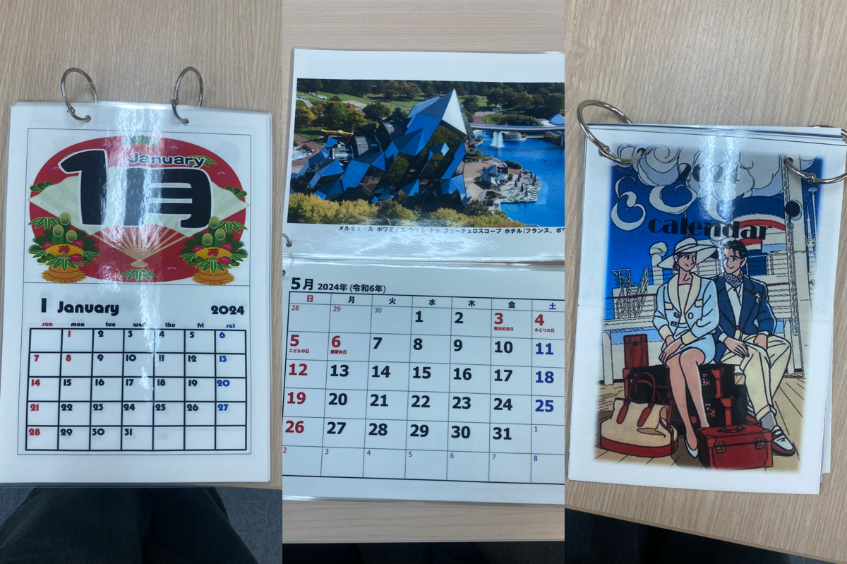 季節感を重視した方、世界の有名な建造物の写真を使われた方、色鮮やかでおしゃれなデザインを考えられた方など、 個性的で素敵なカレンダーがたくさんできました!