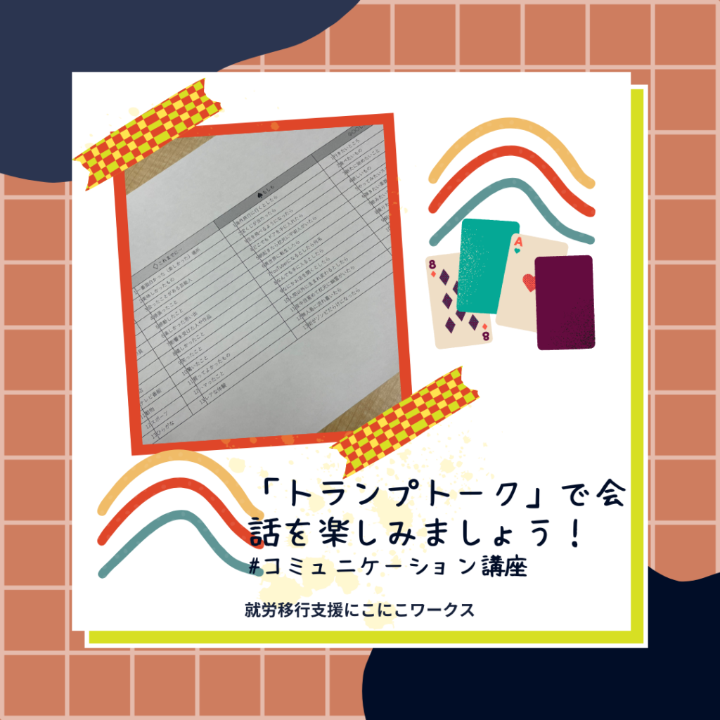 大阪市西区の就労移行支援事業所にこにこワークスで行っている精神疾患や発達障害の方へのサポート ~「トランプトーク」でコミュニケーションを楽しみましょう!~