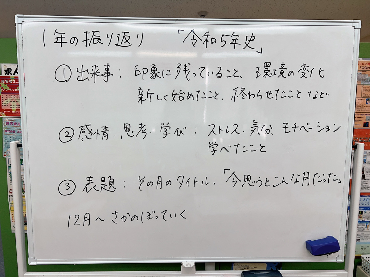 昨日は今年最後の自己理解講座で、それぞれ自分の1年間を振り返っていきました。