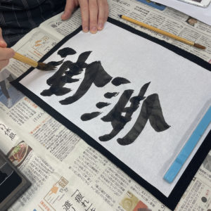 体も温まりお腹もいっぱいになったところで、午後からは書初めをしました。