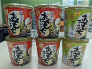 お昼ご飯は、お正月特別メニューのおもちすうぷおにぎりです。 温かいスープとおにぎりで癒されました♪