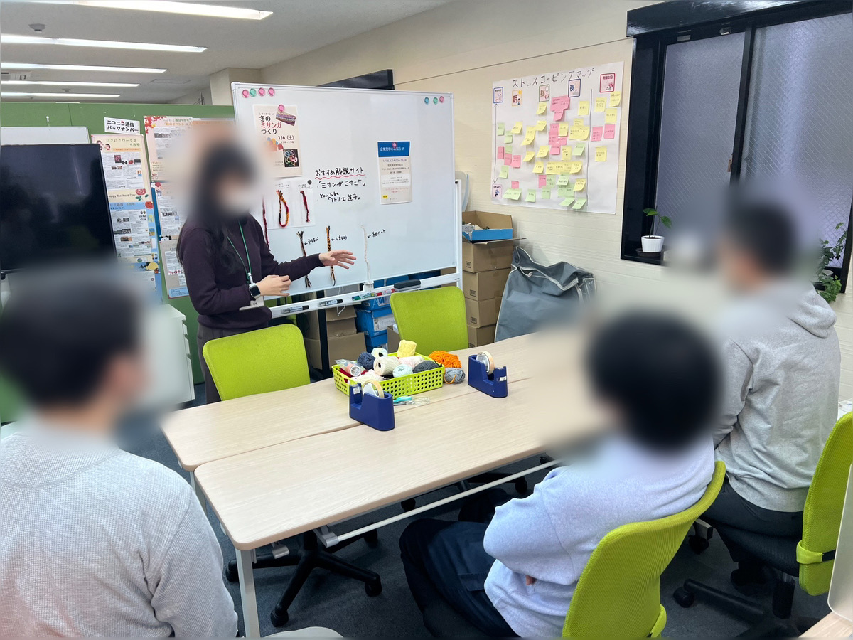 大阪市西区の就労移行支援事業所にこにこワークスで行っている精神疾患や発達障害の方へのサポート ~ミサンガ作り~