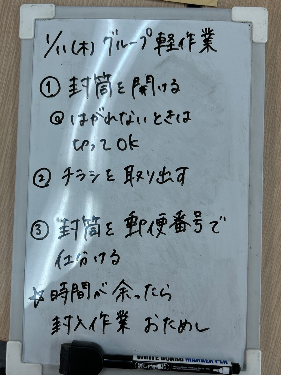 根気のいる作業でしたが、ご利用者の皆さんのおかげで ほぼ全ての封筒を開けてチラシを取り出すことができました。