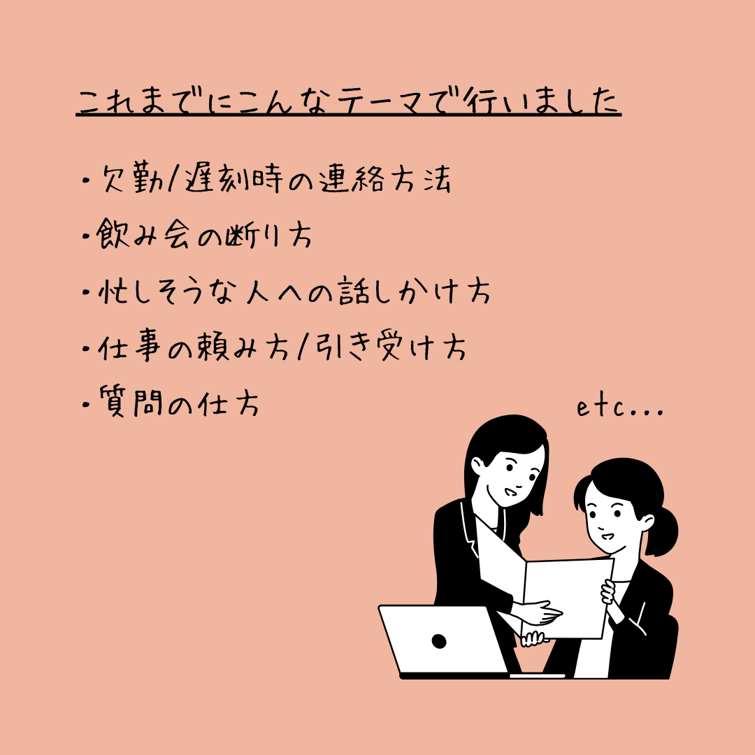 SSTでは、会社や日常生活で困りがちなテーマを取り扱い、みなさんで対処法を考えていきます。
