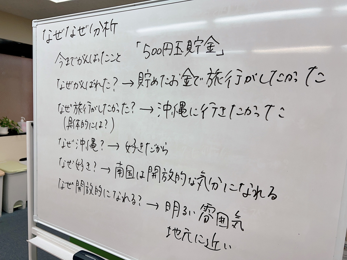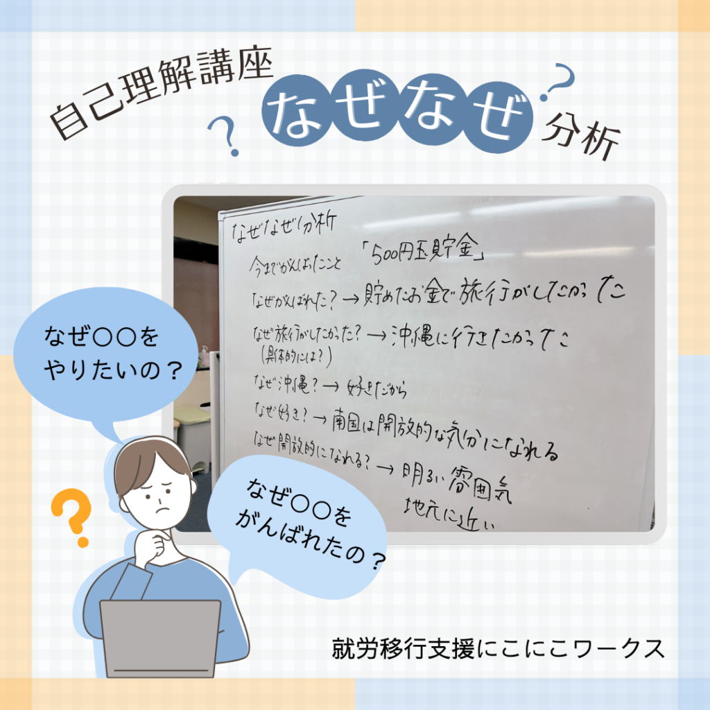今回は、自己理解講座で行った『なぜなぜ分析』についてご紹介します。