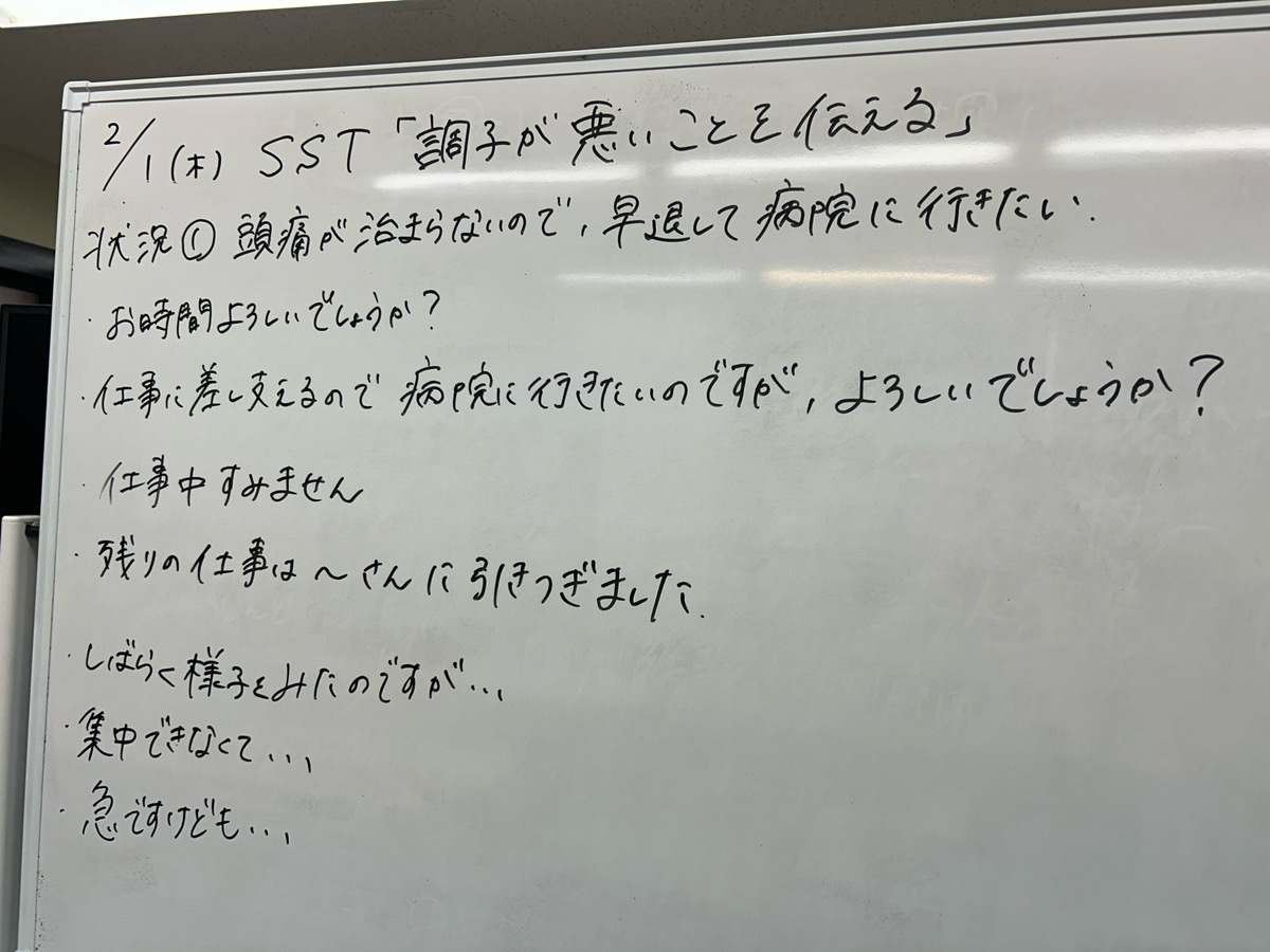 こんにちは。 今日のSST講座は「調子が悪いときの伝え方」をテーマに行いました。