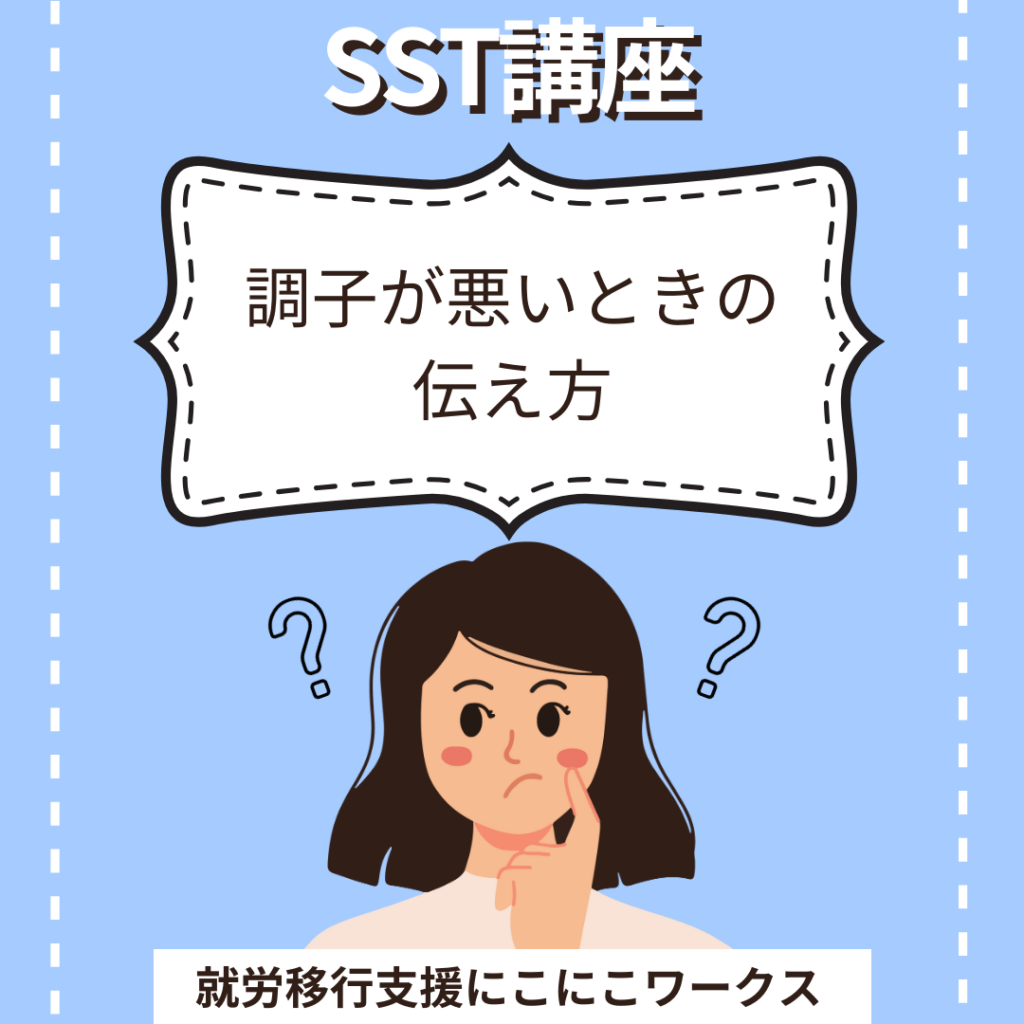 大阪市西区の就労移行支援事業所にこにこワークスで行っている精神疾患や発達障害の方へのサポート ~SST講座『調子が悪いときの伝え方』~