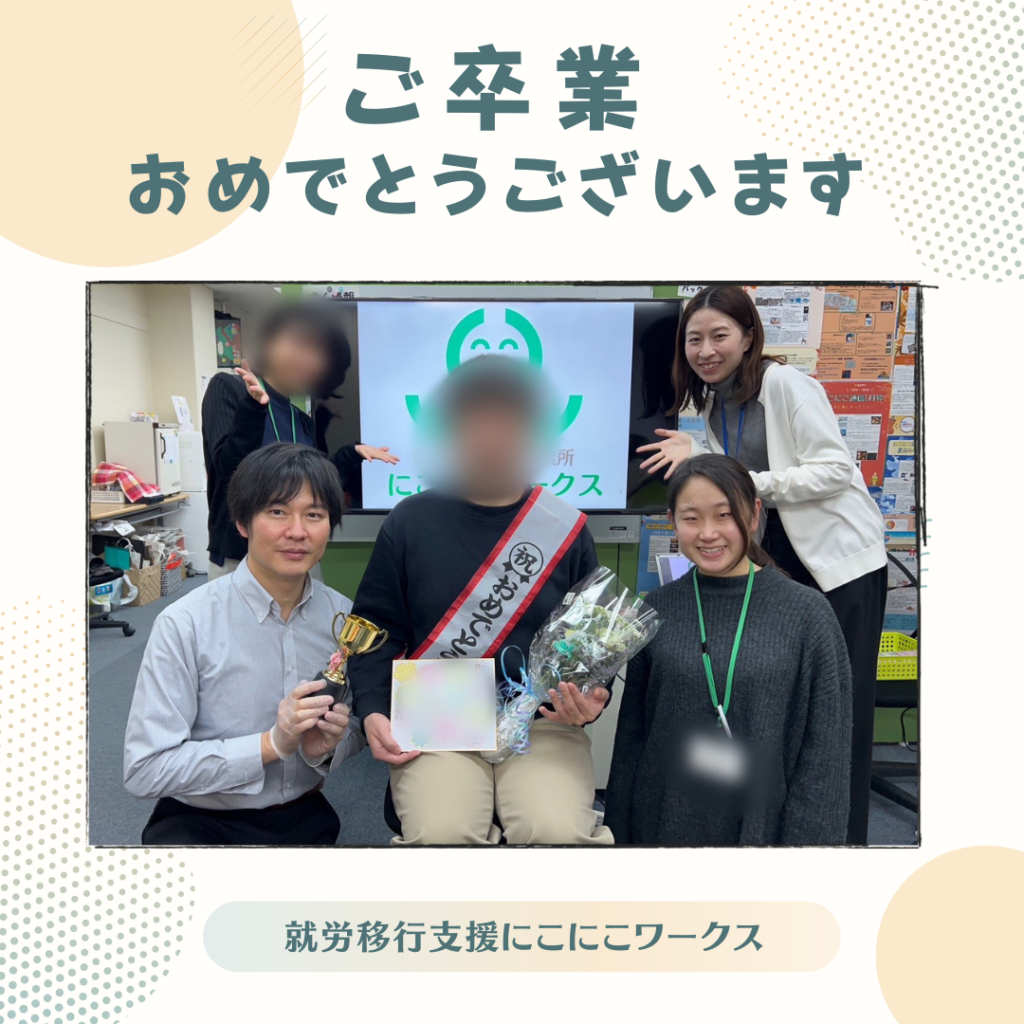 大阪市西区の就労移行支援事業所にこにこワークスで行っている精神疾患や発達障害の方へのサポート ~ご卒業おめでとうございます~