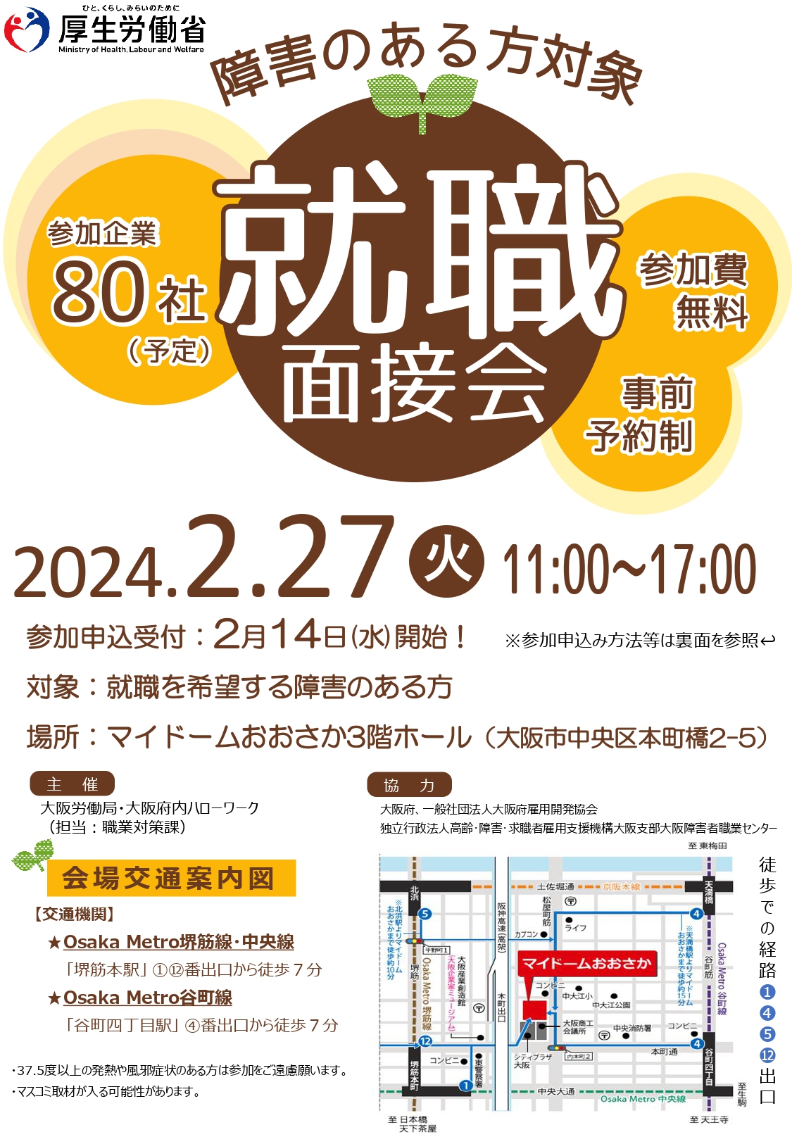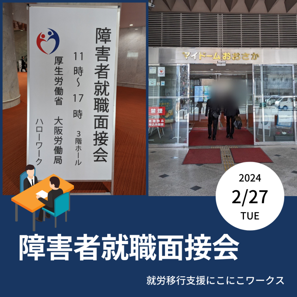 大阪市西区の就労移行支援事業所にこにこワークスで行っている精神疾患や発達障害の方へのサポート ~障害者就職面接会~
