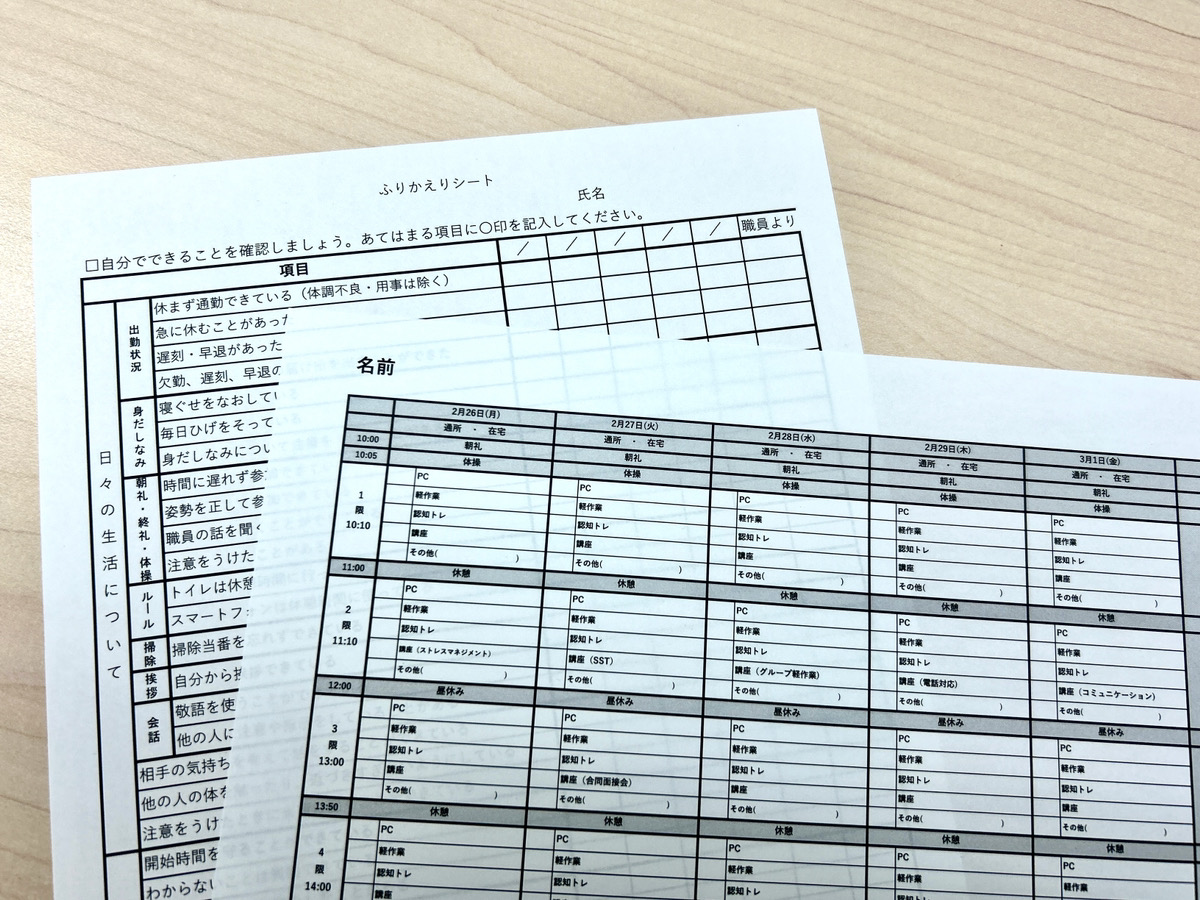 それをもとに職員からもフィードバックをさせていただき、就労準備として重要な項目を整理します。