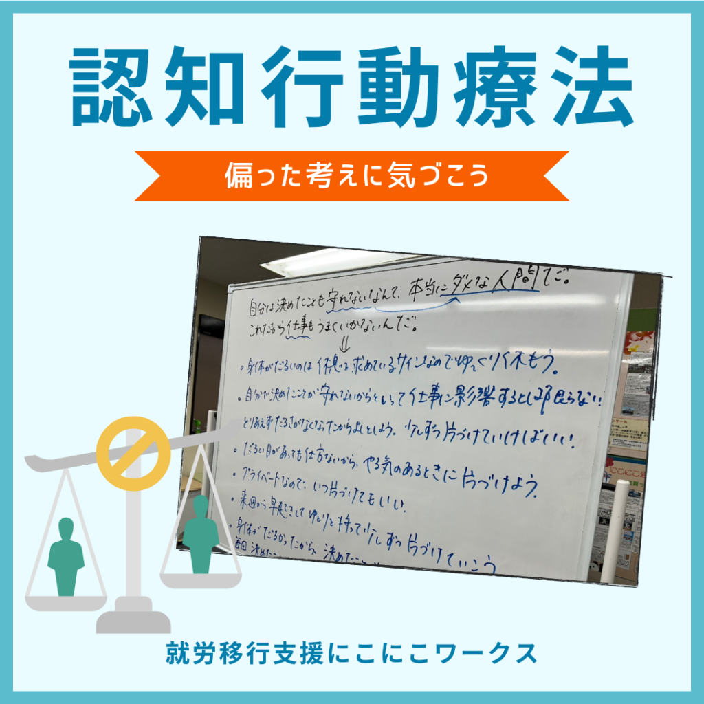 大阪市西区の就労移行支援事業所にこにこワークスで行っている精神疾患や発達障害の方へのサポート ~偏った考えに気づこう~