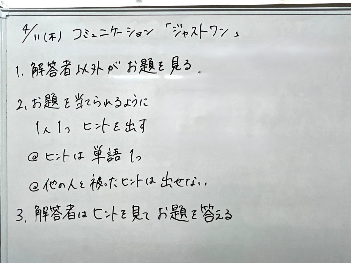 こんにちは。 今日は、コミュニケーション講座でジャストワンというゲームをしました。