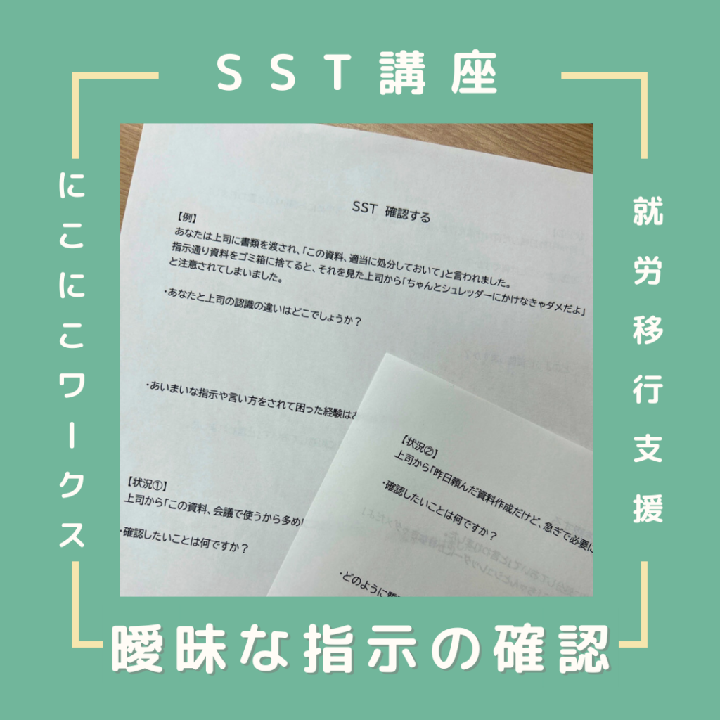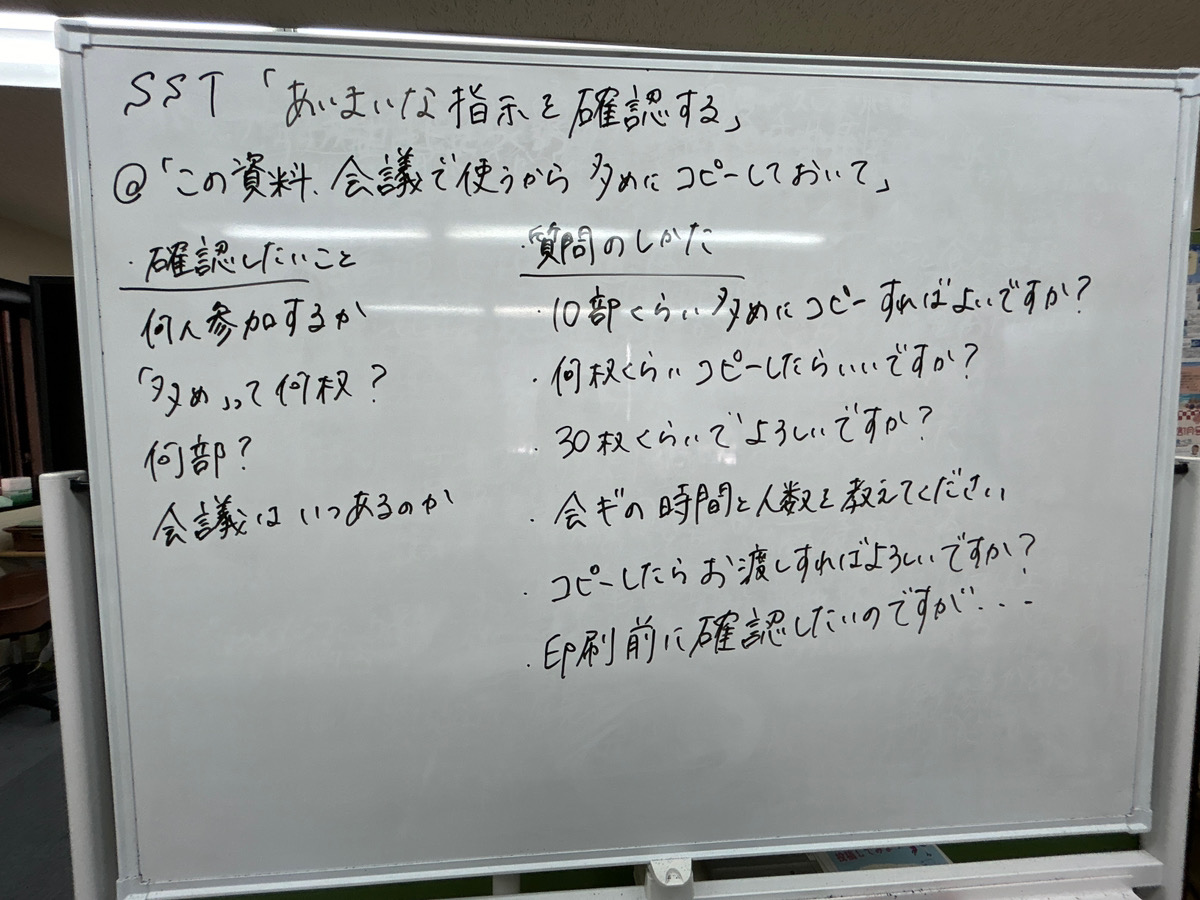 こんにちは。 今日はSST講座のテーマは、「曖昧な指示を受けたときの確認のしかた」でした。